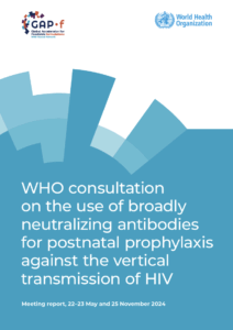 Building on growing momentum from multiple stakeholders, this report summarizes the proceedings from a consultation held to convene a multidisciplinary group of stakeholders, to review the current status of development, data gaps and anticipated challenges to inform the development-to-scale-up pathway of passive immunization strategies using bNAbs for preventing vertical HIV transmission.