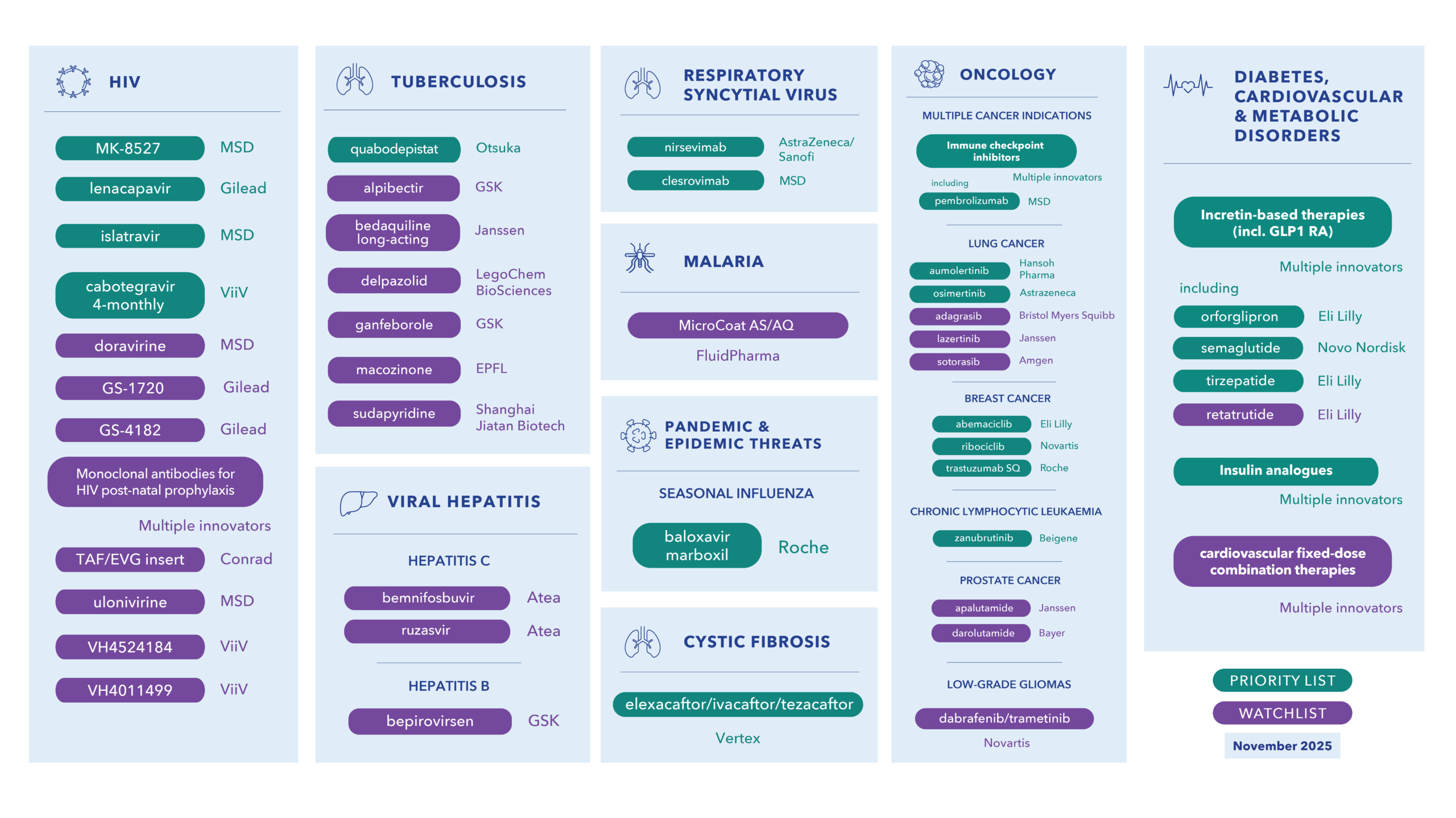 MPP’s list of priority and watchlist products is regularly updated, by following a peer-reviewed prioritisation framework. It outlines the health areas on which MPP focuses its activities.