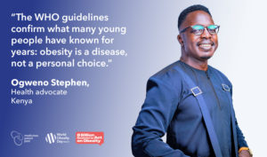 Looking ahead, Ogweno is clear about what leadership on adolescent obesity must look like: education, regulation of unhealthy food marketing, inclusion of obesity care in universal health coverage, pooled procurement to reduce prices, and meaningful involvement of young people living with obesity at every stage.